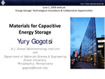 Gogotsi, Yury, "Materials for Capacitive Energy Storage" (2009). Great Lakes Energy Institute: Presentations & Events. 22.