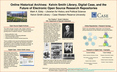 This is a poster that was presented at the 2007 Research ShowCASE poster session. It addresses the growing trend in open source digital archiving of research production in higher education institutions. The poster also highlights plans for creating online archives of primary historical resources. In this case, the Kelvin Smith Library plans to digitize and make available the collected papers of Charles F. Brush (1849-1929), a Cleveland inventor and businessman.